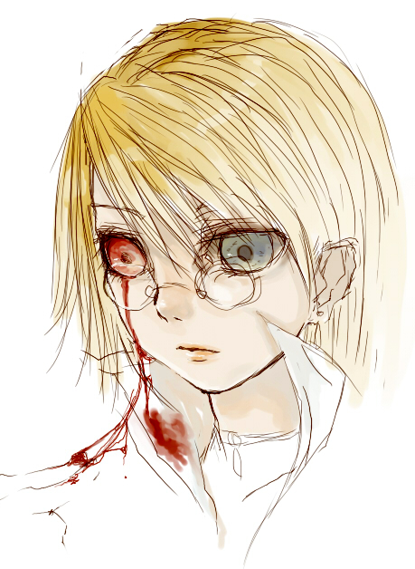 目は青と緑。